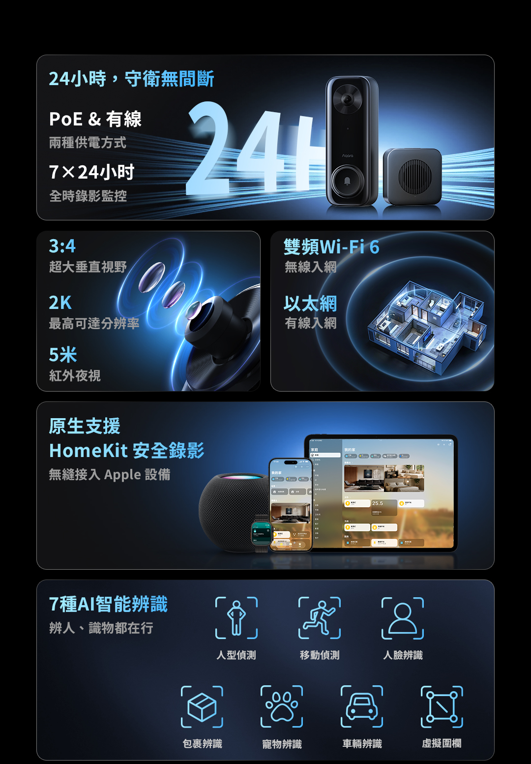 1.門鈴支援行動偵測、人形辨識、虛擬圍籬等免費本地AI偵測功能