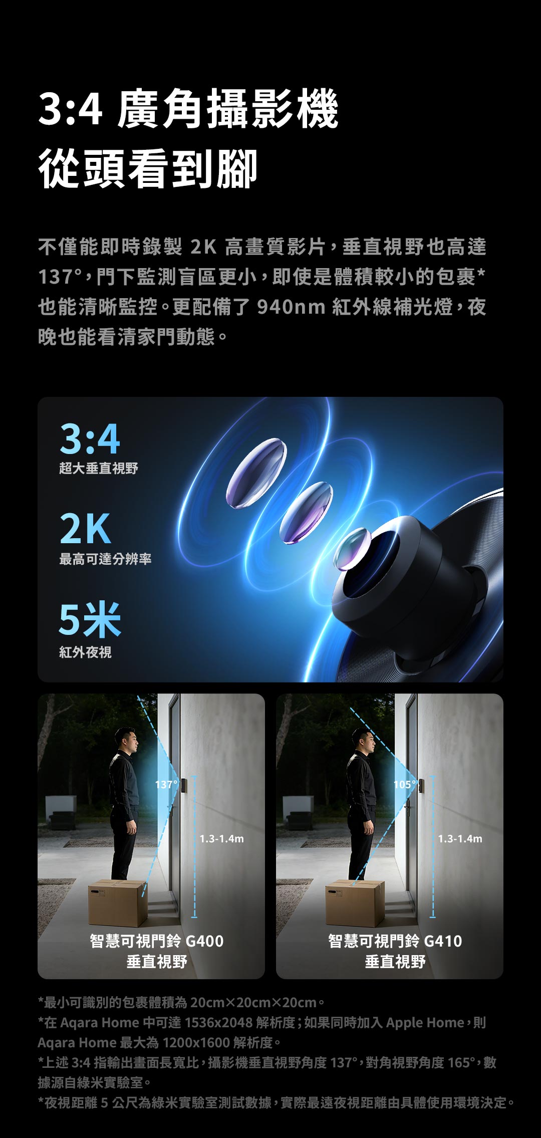 門鈴的垂直視野為137°,水平視野為98°,對角線總視野為165°