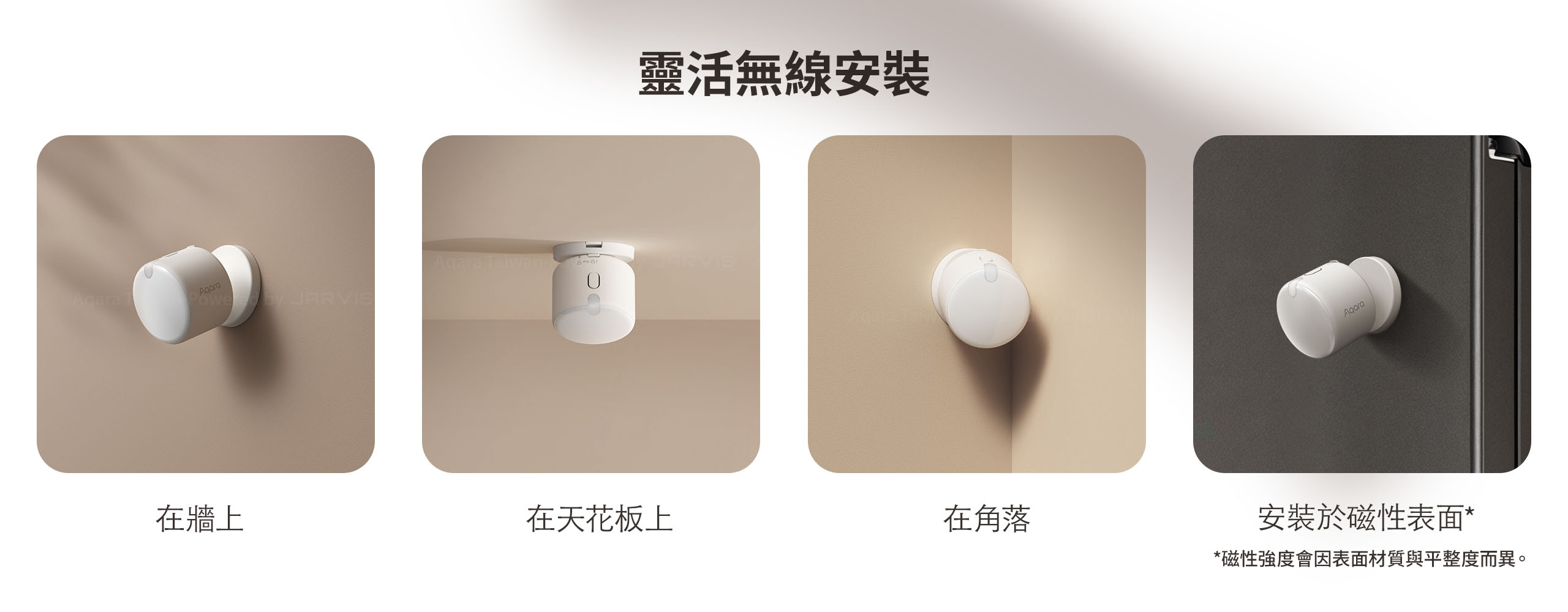 ● 提供靈活的無線安裝,輕鬆安裝於牆壁、天花板、角落或磁性表面