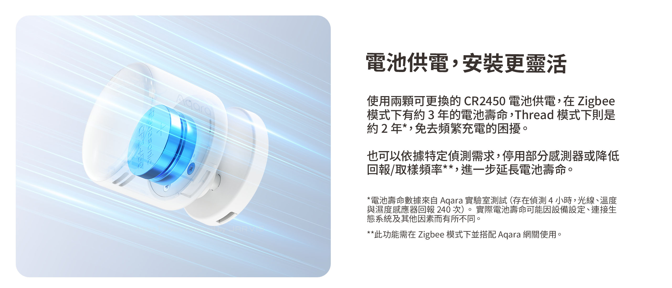 ● 電池續航最長可達:Zigbee模式3年/Thread模式2年