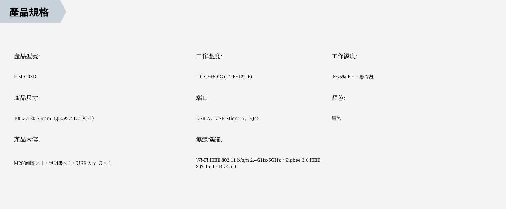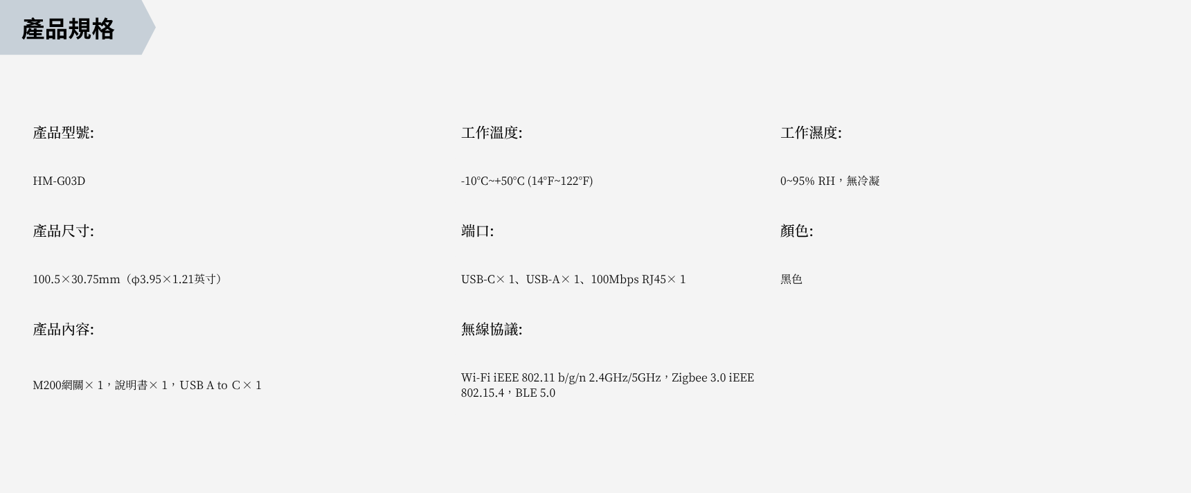 雙頻Wi-Fi 6,相容於Matter、Thread和Zigbee,內建紅外線控制,即插即用安裝,USB-C或PoE供電。