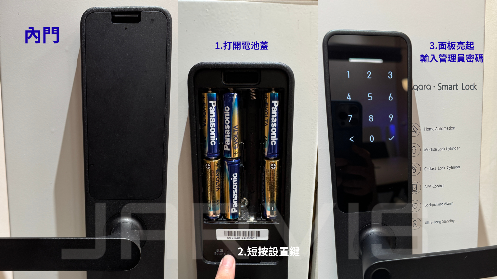 - 開啟電池蓋: 來到門鎖的「室內側」,取下電池蓋板。