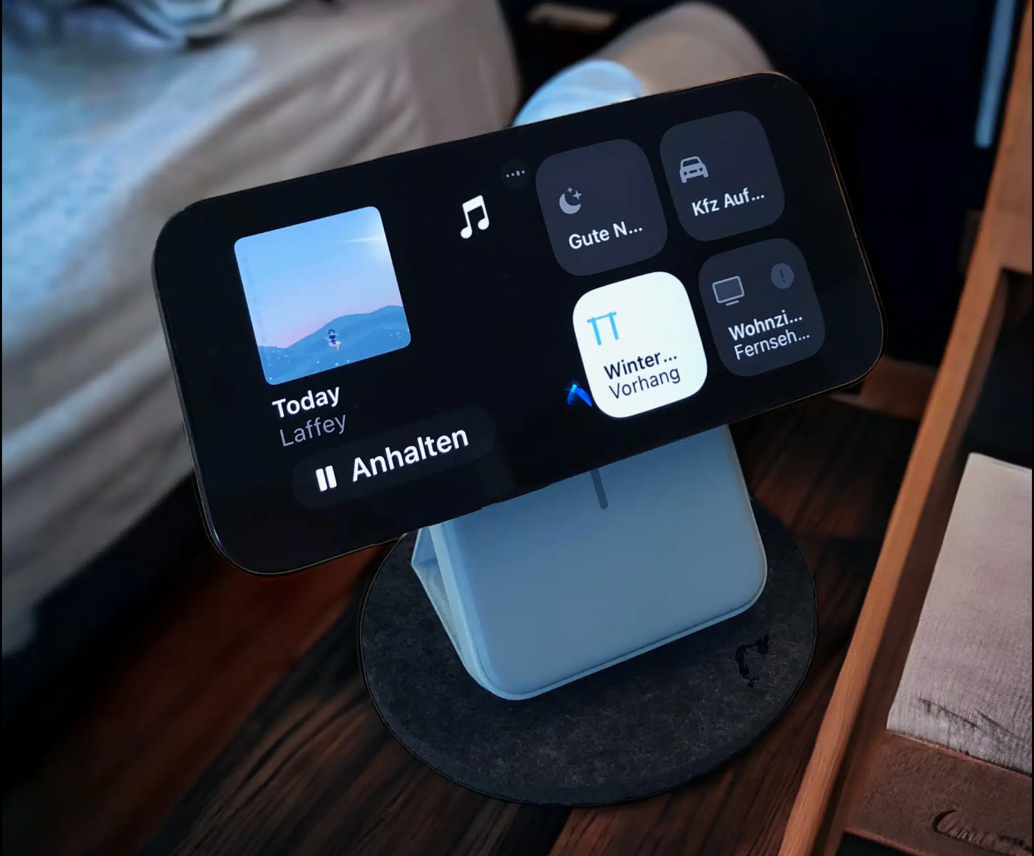 若將充電中的iphone水平的放置,您的手機將化為床邊的多功能小工具,擁有時鐘、智能家庭的控制板、音樂播放器等功能。