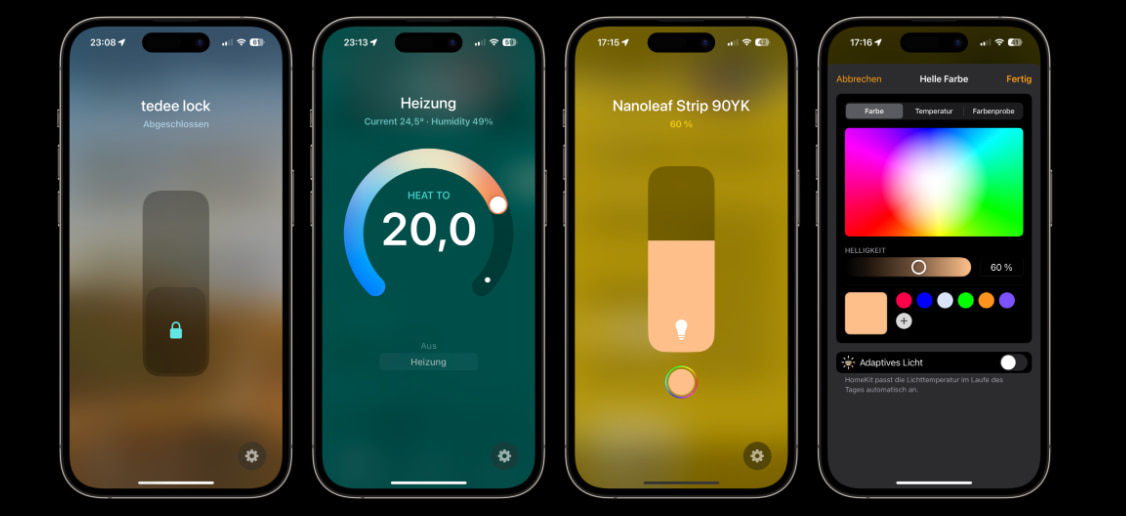 Apple Home app 的更新,裝置的視圖背景不再是白色,而是透明的,燈的顏色也有新的選擇,此外,HomeKit 兩項受歡迎的功能,輕點解鎖和PIN密碼解鎖也將在未來更新後適用於與Matter兼容的門鎖。